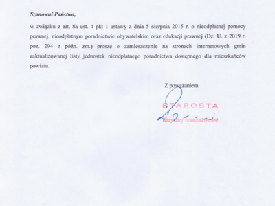 Lista jednostek nieodpłatnego poradnictwa dostępnego dla mieszkańców...