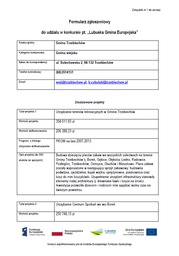 Zrealizowane projekty Gminy Trzebiechów „Lubuska Gmina Europejska”
