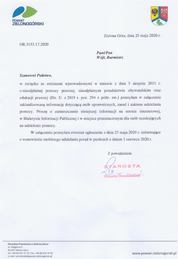 Ogłoszenie Starosty z dn. 25.05.2020 r