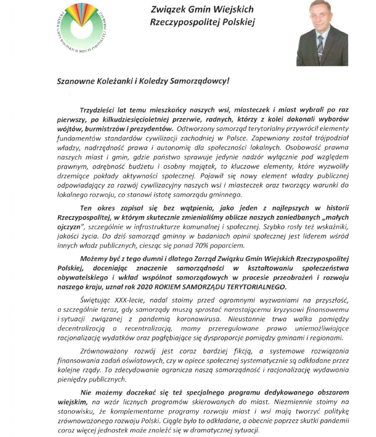 Życzenia z okazji XXX-lecia odtworzenia samorządu gminnego
