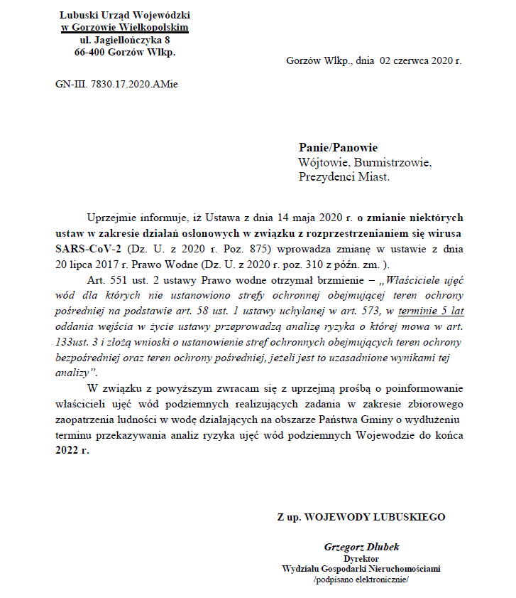 Informacja o zmianie terminu składania Analiz Ryzyka do Wojewody