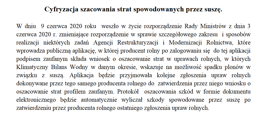 Informacja dla rolników w związku z wystąpieniem suszy w 2020r