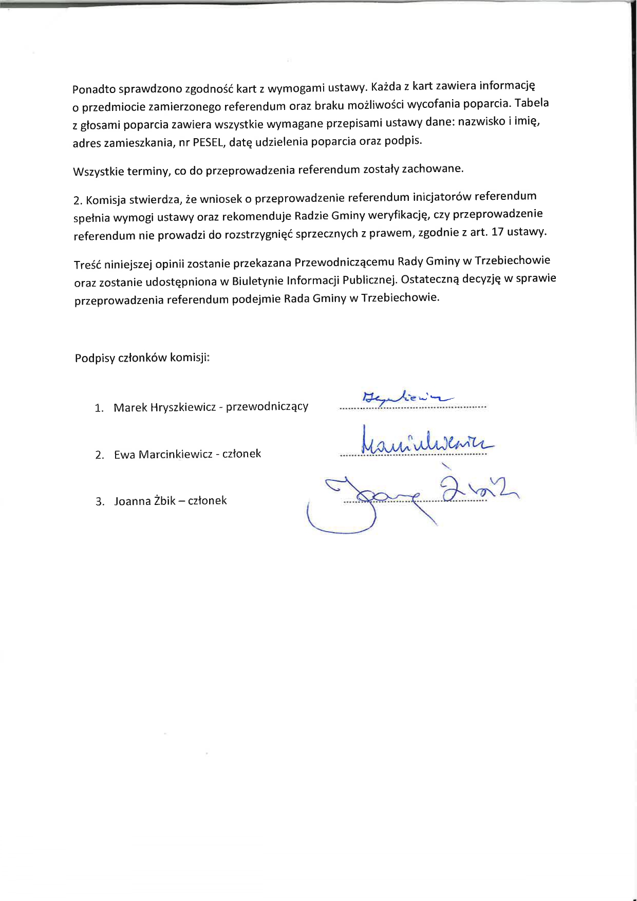 Opinia komisji doraźnej Rady Gminy w Trzebiechowie w sprawie przeprowadzenia referendum lokalnego
