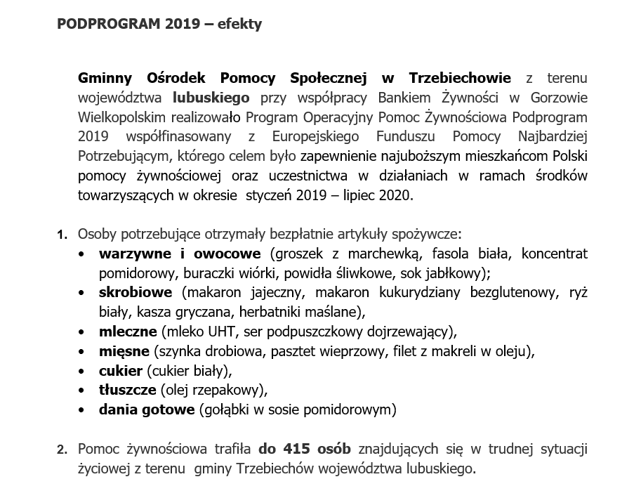 Pomoc żywnościowa Podprogram 2020