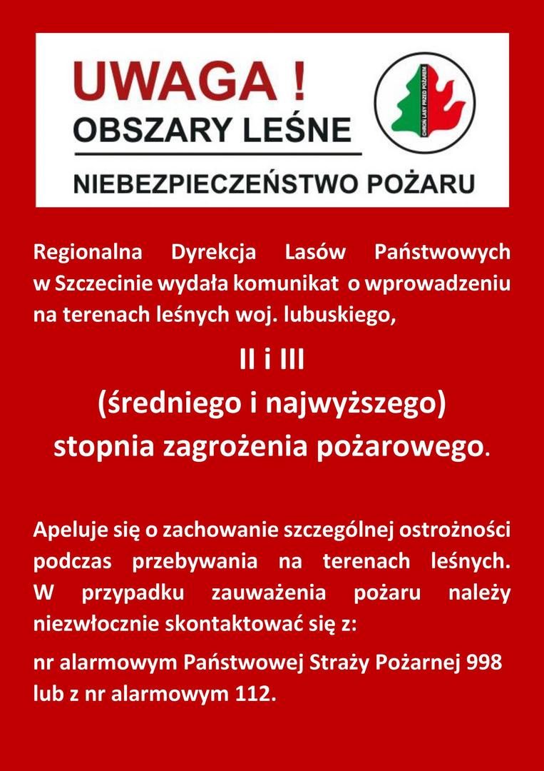 II i III stopień zagrożenia pożarowego dla terenów leśnych woj. lubuskiego