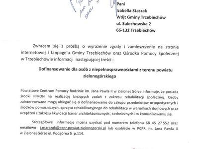 Dofinansowanie dla osób z niepełnosprawnościami z terenu powiatu...
