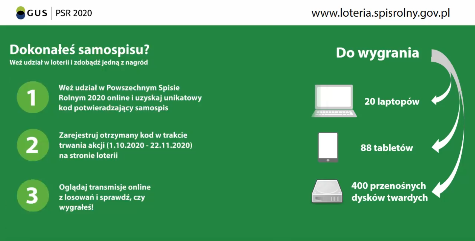 Rolniku, spis to nie tylko obowiązek ale również szansa na fantastyczne nagrody ❗️ Pamiętaj, że możesz wziąć udział w loterii spisowej ❗️ Może to właśnie na Ciebie czekają: laptopy, tablety, dyski przenośne ‼️ Wystarczy, że spiszesz się przez Internet i zarejestrujesz na stronie loterii ➡️ https://loteria.spisrolny.gov.pl