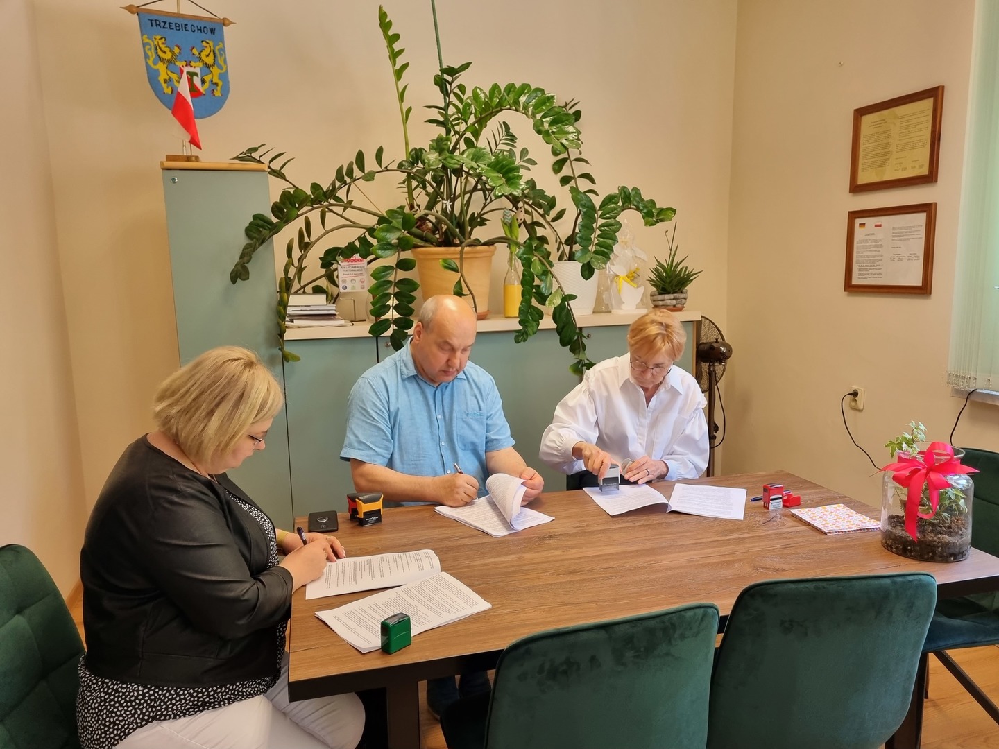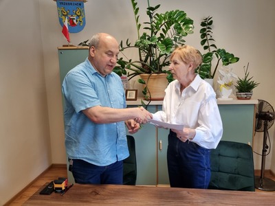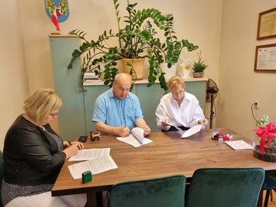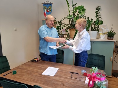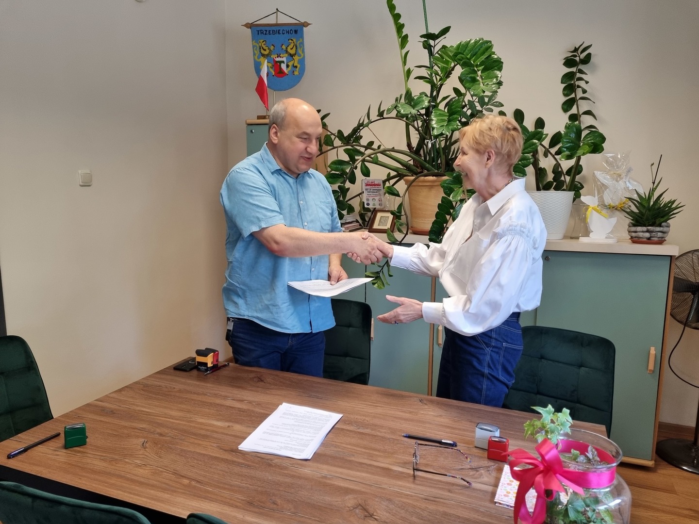 W dniu 1 czerwca 20922 z Panią Skarbnik Ewą Kulik w obecności Inspektora Rafała Kubickiego podpisaliśmy umowę z Panem Karolem Jankowskim Prezesem Przedsiębiorstwa Drogowego „KONTRAKT” z Krosna Odrzańskiego na „Przebudowę drogi gminnej dz.nr 268/1 w sołectwie Radowice” 682 mb za kwotę brutto 293 855,61 zł .Realizacja zadania 150 dni od dzisiejszego podpisania umowy.