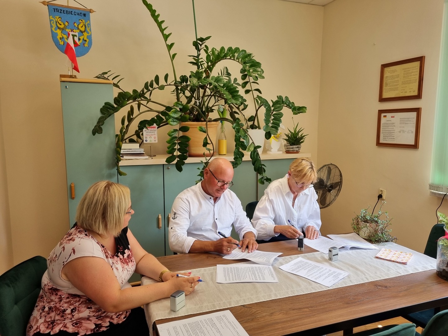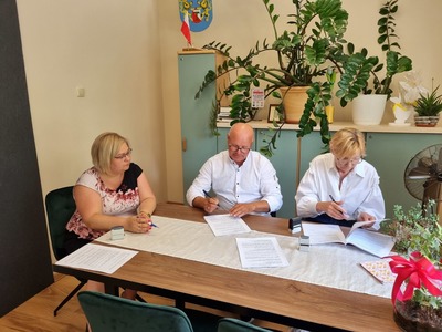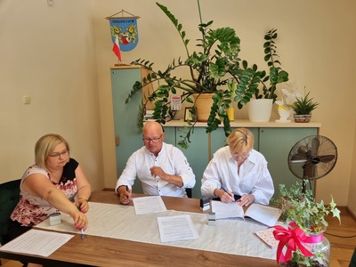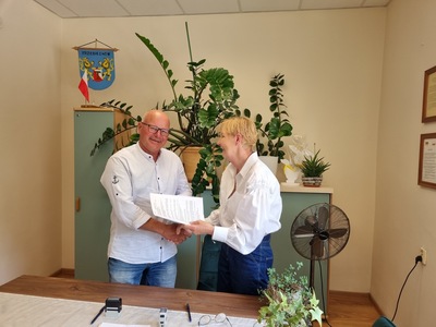 W dniu dzisiejszym podpisaliśmy razem z Panią Skarbnik Gminy Ewą Kulik umowę na wykonanie zadania "remont drogi gminnej ul. Sulechowska w Trzebiechowie". Wykonawcą jest Pan Mariusz Janik Firma Handlowo-Usługowa Profit-Bud. Koszt budowy 212 242,65 zł w tym dofinansowanie z Funduszu Dróg Samorządowych 157 291 zł.