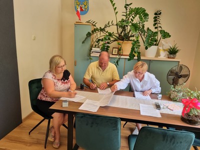 W dniu 6 lipca podpisaliśmy razem z Panią Skarbnik Gminy Ewą Kulik Umowę na wykonanie zadania dotyczącego dostosowania Ośrodka Kultury im.T.Wojtera do wymogów przeciwpożarowych. Wykonawcą jest Pan Piotr Poniedziałek Zakład Remontowo-Budowlany . Koszt remontu 550 000 zł w tym dofinansowanie w ramach Polskiego Ładu 157 291 zł.