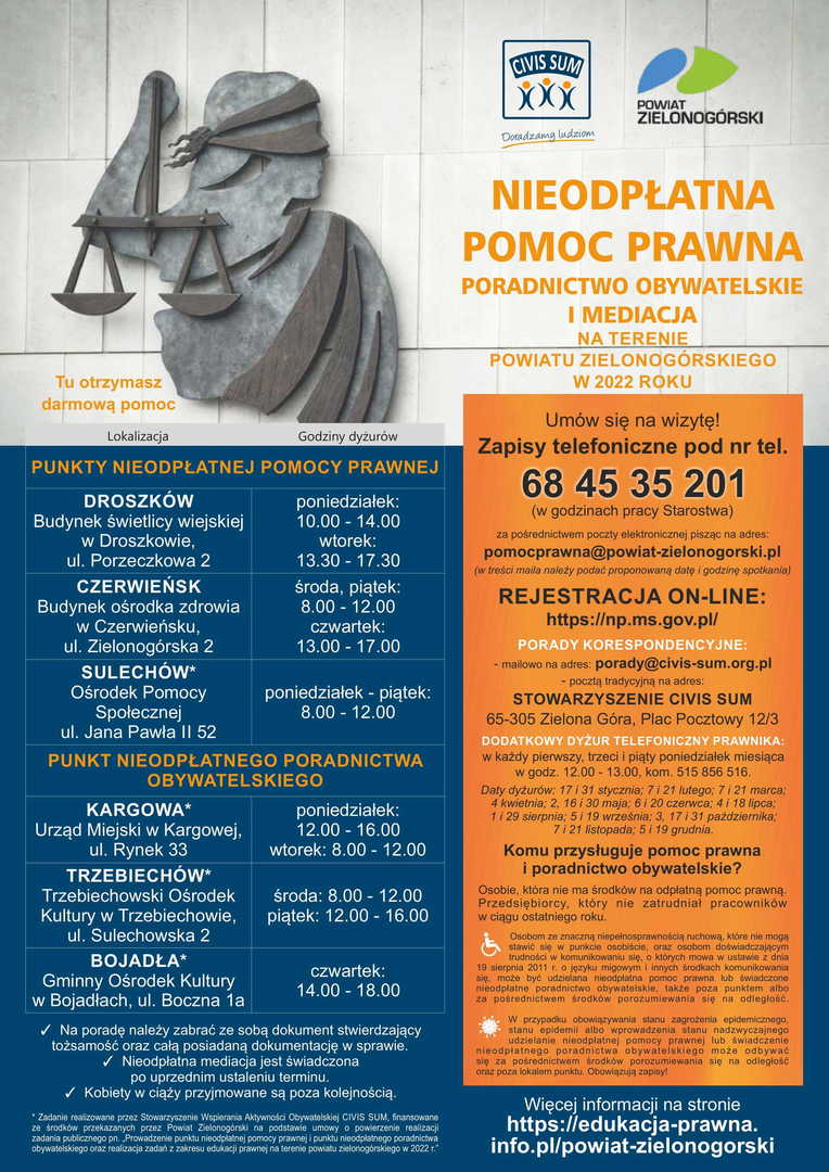 Nieodpłatna pomoc prawna na terenie powiatu zielonogórskiego w 2022 roku