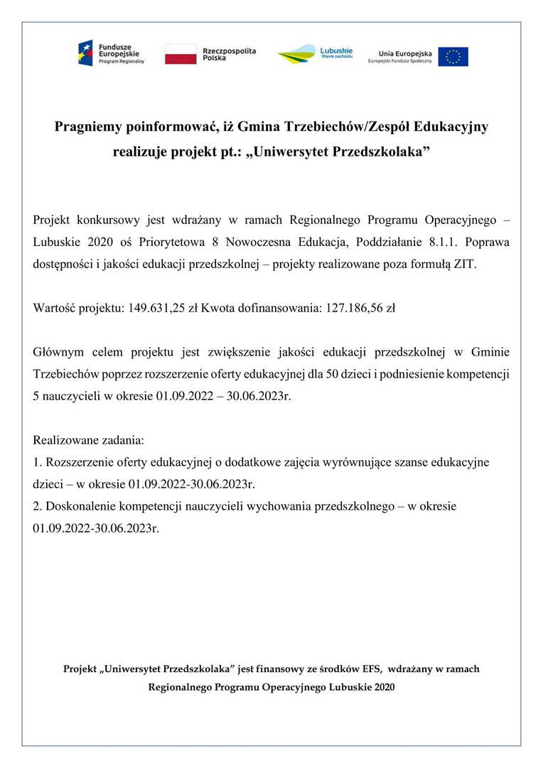 Gmina Trzebiechów/Zespół Edukacyjny realizuje projekt pt.: „Uniwersytet Przedszkolaka”