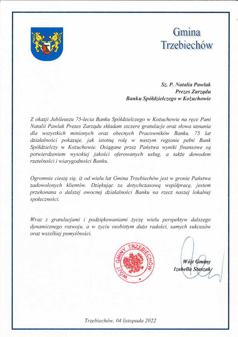 Z okazji Jubileuszu 75-lecia Banku Spółdzielczego w Kożuchowie