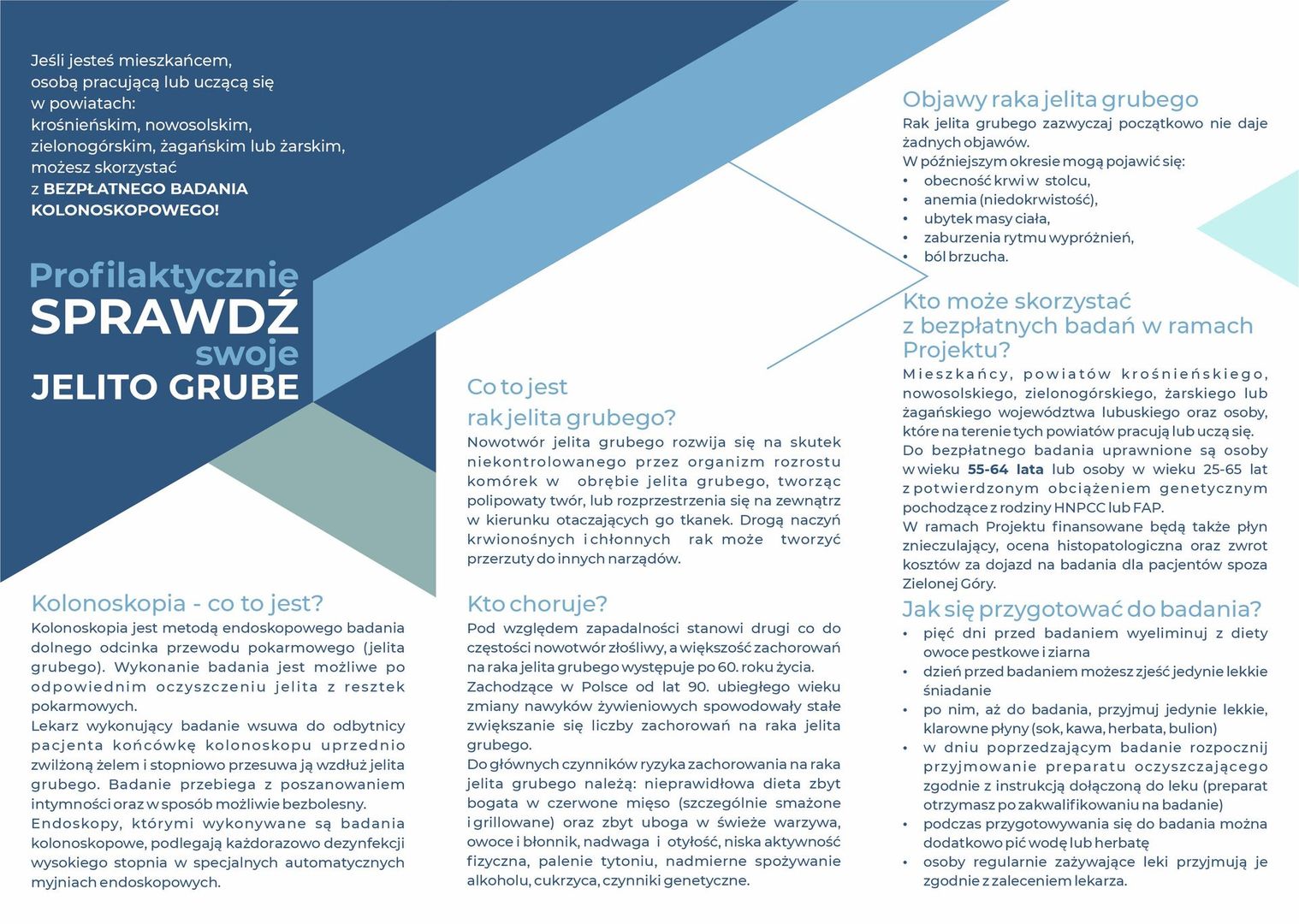 Kolonoskopia dla osób pracujących, uczących się i mieszkających w powiatach województwa lubuskiego: krośnieńskim, nowosolskim, zielonogórskim, żagańskim, żarskim