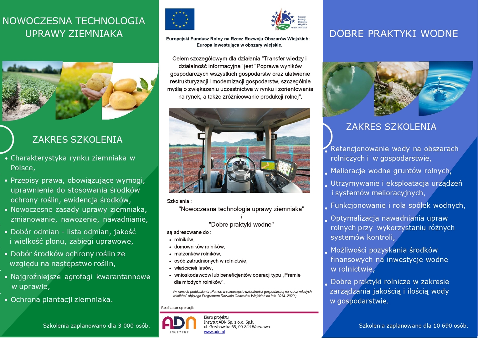 Bezpłatne szkolenia dla rolników na temat “Nowoczesnej technologii uprawy ziemniaka” i “Dobrych praktyk wodnych”