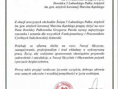 Z okazji obchodów Święta 5 Lubuskiego Pułku Artylerii im. gen....