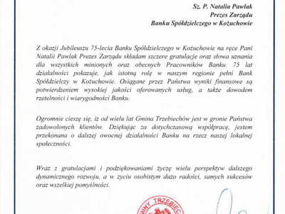 Z okazji Jubileuszu 75-lecia Banku Spółdzielczego w Kożuchowie