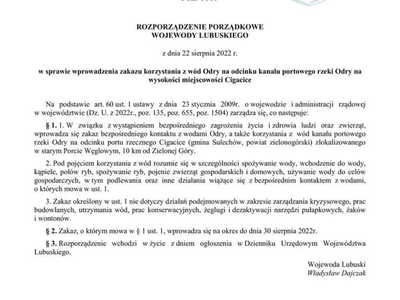 Rozporządzenie Porządkowe Wojewody Lubuskiego z dnia 22 sierpnia...